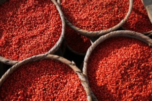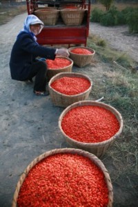 In der hochgelegenen und sonnenreichen chinesischen Provinz Ningxia wachsen Goji Beeren unter natürlichen Bedingungen.
